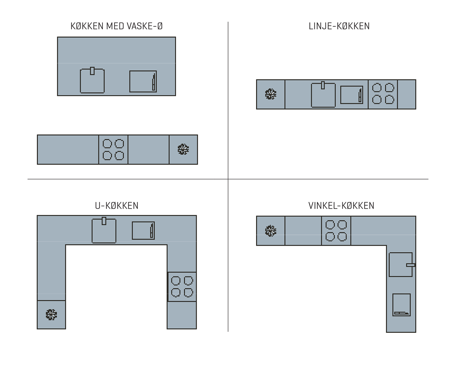 Vi tilbringer langt det meste af tiden i køkkenet ved vasken. Det er derfor en god ide at anbringe den, så I kan stå med front mod rummet, hvor familien og gæsterne er. Sørg også for god plads omkring vasken, så I nemt kan lægge skyllede madvarer fra jer.