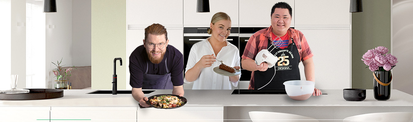 I det søde køkken finder du indbydende og kreative opskrifter fra Liv Martine og Micki Cheng. De er begge kendt fra DR-programmet "Den store bagedyst". I det salte køkken har vi fornøjelsen af Anders Rytter, som er gourmetkok på en dansk Michelinrestaurant.