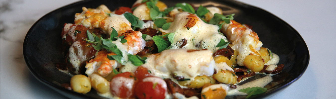 7. Til slut vendes tomater, gnochi og chorizo igen på panden, til det er lunt.