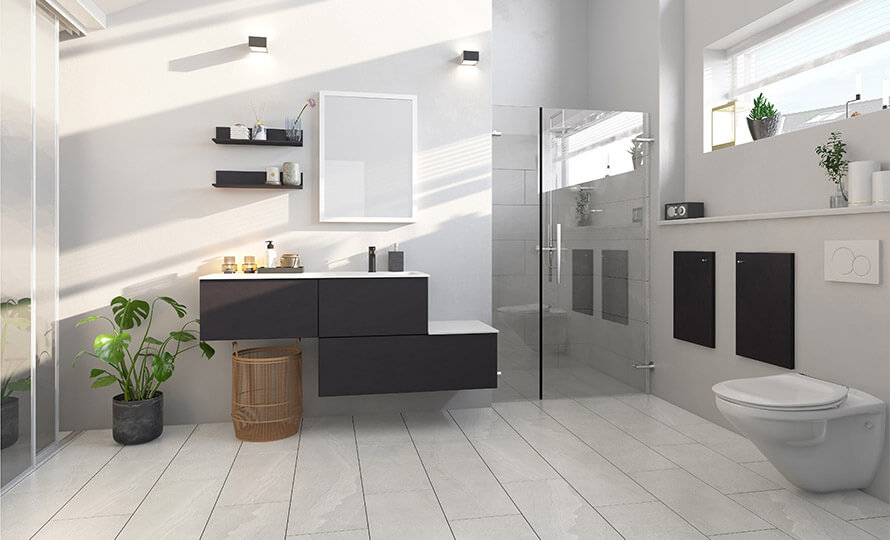 - Linoleum Antracit Bad: Den karakteristiske Z-form fører den klassiske modul tænkning ud i badet og er både funktionelt og designmæssigt elegant i sit formsprog. Den mørke linoleum i antracit med massivtræskanter og frisider i sort egefinér sætter prikken over det berømte ’i’. Vejl. pris: 23.436 inkl. skabe, indbygningsskabe i væg, bordplade og vask. Ekskl. skydedøre, armatur, belysning og spejl.
