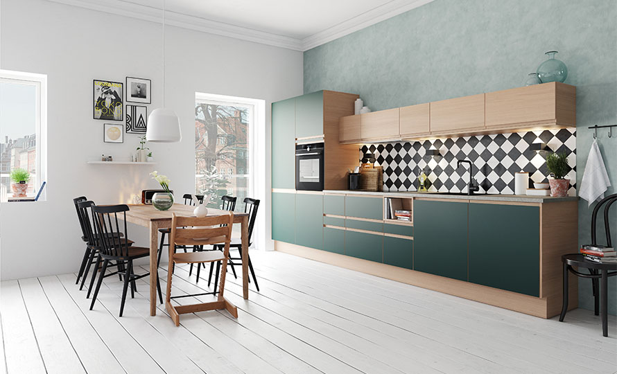 – Linoleumsfronterne passer perfekt i vores store sortiment, hvor det er oplagt at matche med for eksempel sokler, grebsprofiler og kanter i forskellige typer af egetræ. Det er således muligt at sammensætte præcis det, man måtte drømme om, siger hun.